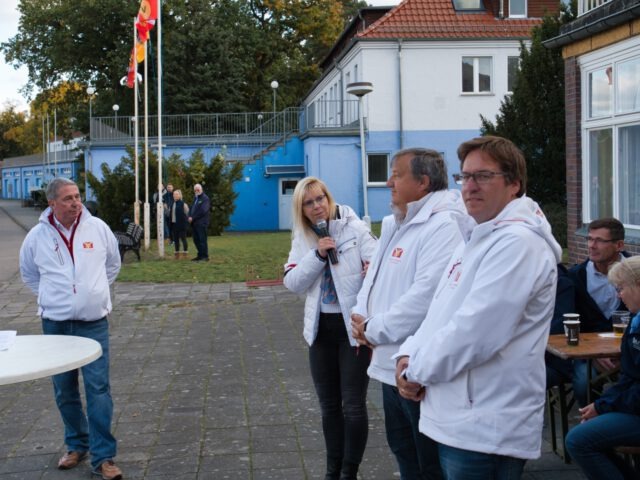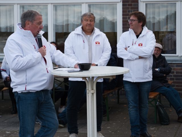 Der feierliche Teil folgte dann an Land auf dem Gelände der Regattastrecke Grünau mit der Flaggengala, bei der das Einholen der Flaggen symbolisch das Ende der Saison markierte. Vertreterinnen und Vertreter der ansässigen Wassersportvereine, Ehrengäste aus Politik und Sport sowie zahlreiche Vereinsmitglieder versammelten sich zur Zeremonie. In den Ansprachen wurde auf die Jubiläumssaison des MVB zurückgeblickt, die von zahlreichen sportlichen Wettfahrten, einigen Großereignissen, engagierter Vereinsarbeit und einem starken Gemeinschaftsgefühl geprägt war.